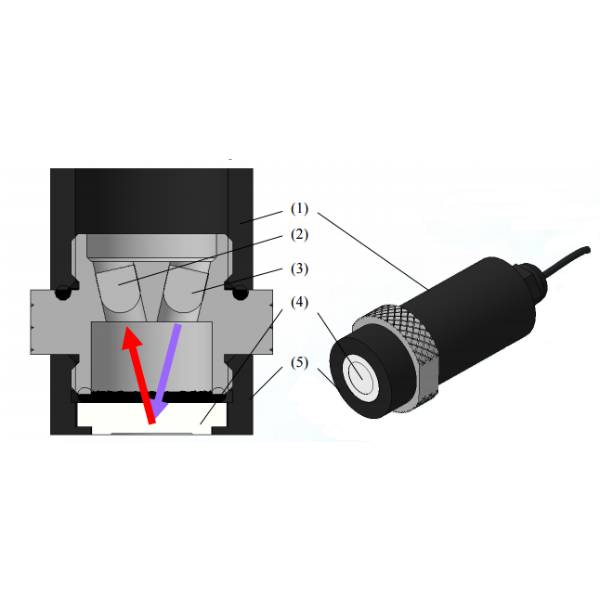 Чувствительным элементом датчика является специальный фосфоресцирующий краситель. Под действием кислорода происходит тушение фосфоресценции, которое анализатор пересчитывает в значение концентрации. Данный метод является чрезвычайно высоко селективным благодаря уникальным свойствам молекулы кислорода.