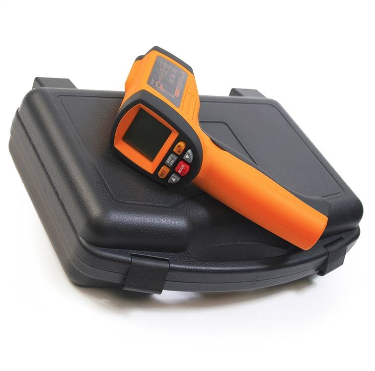 Данный ИК термометр МЕГЕОН 161150 предназначен для измерения температур поверхности различных предметов. Может использоваться без прямого контакта с горячими, опасными или трудно досягаемыми объектами для быстрого и безопасного проведения измерений. Прибор состоит из объектива, усилителя сигнала, процессорной части и ЖК-дисплея. Объектив собирает ИК-энергию, излучаемую объектом и фокусирует ее на сенсоре. Затем сенсор превращает данную энергию в электрический сигнал. После усиления и преобразования сигнала результат измерения в цифровом виде отображается на дисплее. Прибор оснащен подсветкой дисплей и улучшенным лазерным целеуказателем.