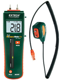 Комбинированный штифтовой/бесконтактный измеритель влажности Extech MO265 c дистанционным зондом позволяет проводить измерения влажности древесины и других строительных материалов без нарушения поверхности объекта.