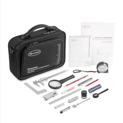 Для проведения вышеперечисленных операций набор ВИК «Эксперт» комплектуется: универсальным шаблоном сварщика, штангенциркулем, металлическими линейкой и угольником, наборами щупов и радиусных шаблонов, лупами просмотровыми с подсветкой и без, измерительной лупой с подсветкой, телескопическим инспекционным зеркалом, карманным фонарем с батарейками и рулеткой. Для фиксации и хранения результатов контроля в наборе ВИК «Эксперт» поставляются USB-флэш-накопитель (16 ГБ), блокнот, ручка и карандаш. Для пометок и записей на объектах контроля применяются несмываемый маркер и высокотемпературный мелок.