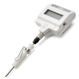 Пружинный держатель для электронных термометров ЛТ‑300 или ЛТИ позволит просто и надежно крепить датчик температуры на стенках лабораторной посуды так, что он не будет касаться ни ее дна, ни стенки.