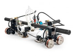 Мобильный сканер MS151 SPRUT состоит из двух колесных баз, двух подвесов антенных решеток, профиля для крепления подвесов АР, набора рамок для АР (автоматическая подача жидкости), набора для автоматической подачи жидкости, лазерного указателя, мультиплексора антенных решеток:
