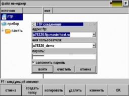 На FTP-сервере пользователь выбирает нужный файл. Нажатием кнопки «копировать» пользователь отправляет выбранный файл в нужную папку памяти прибора. Копирование с прибора на FTP-сервер осуществляется в обратном порядке