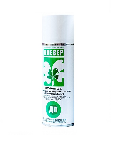 Проявитель КЛЕВЕР ДП представляет собой жидкий проявитель на безводной основе. Используется для проявления следов дефектов на контролируемой поверхности. Соответствует ГОСТ 18842 — 80, EN ISO 3452-2, ASME V Art.6, ASTM E 165, AMS 2644.
