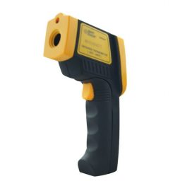 Инфракрасный термометр AR842A+ умеет бесконтактно измерять температуру в диапазоне -50℃~600℃. Принцип работы пирометра основан на излучении инфракрасного диапазона. Отношение расстояния, с которого производится замер к диаметру пятна измерения для термометра AR842A+ составляет 12:1, что дает возможность с 12-ти метров считывать температуру с поверхности диаметром 1 метр. Термометр инфракрасный этой модели обладает увеличенной точностью измерений и невысоким временем восприятия, что делает измерения точными и быстрыми.