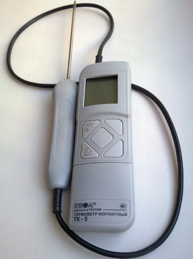 Термометры контактные цифровые ТК-5.01М предназначенные для измерения температуры жидких, сыпучих сред путем непосредственного контакта зонда с объектом измерения. Термометры контактные цифровые состоят из электронного блока и несменного погружаемого зонда. В качестве термочувствительного элемента в зонде используются преобразователи термоэлектрические (ТП) с НСХ по ГОСТ Р 8.585.