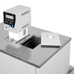 - Оригинальная конструкция блока регулирования температуры, объединяющая в одном замкнутом объеме датчик температуры, нагреватель и циркуляционный насос, позволяет добиться исключительной стабильности и равномерности температурного поля в рабочем объеме термостата.