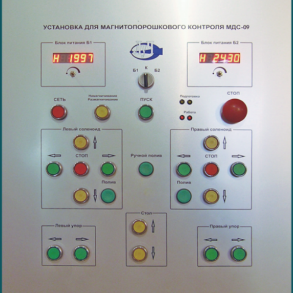 Установка магнитопорошковая стационарная МДС-09 предназначена для контроля деталей и изделий из ферромагнитных сплавов магнитопорошковым методом по ГОСТ 21105-87.